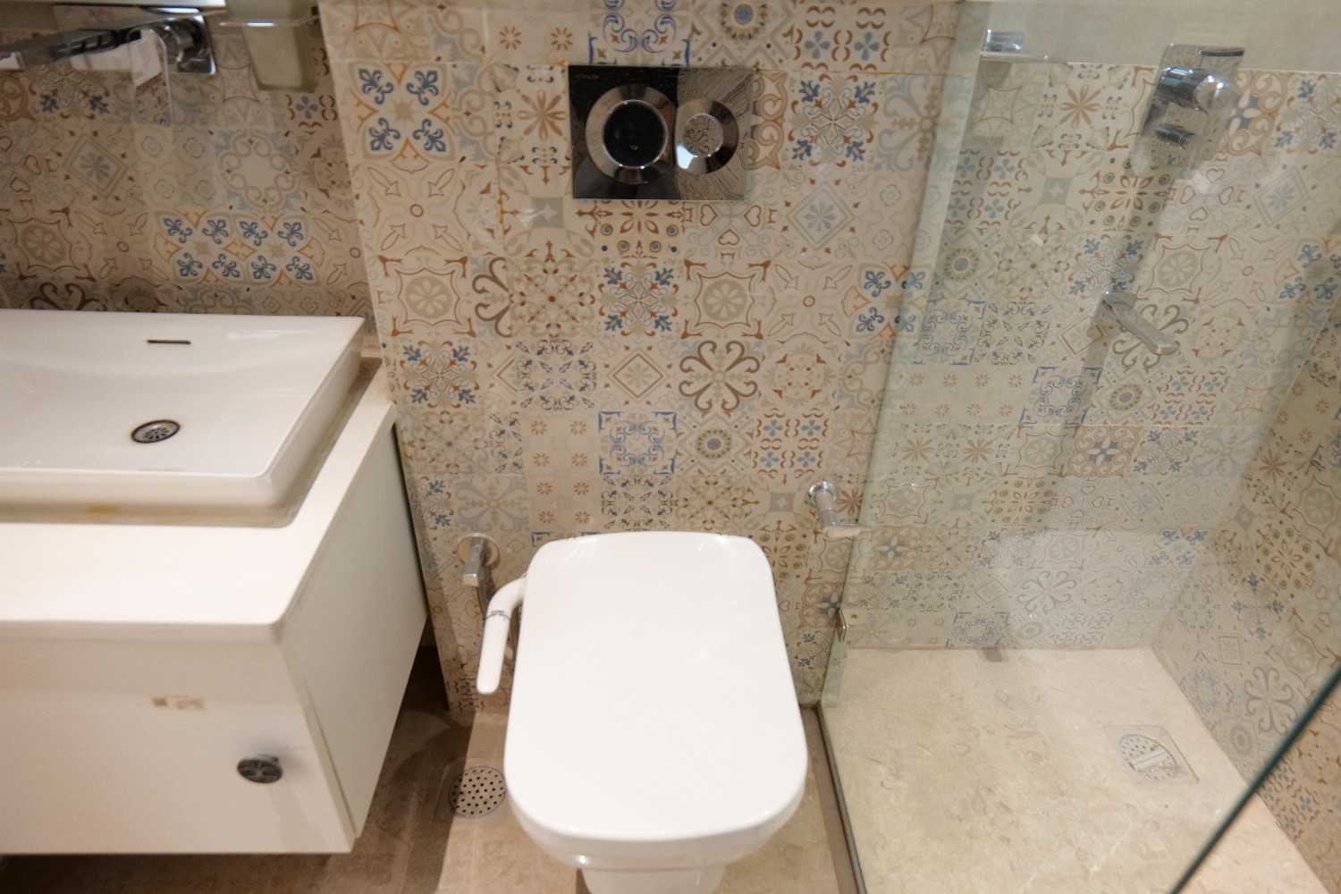 - Dado of designed RAK Ceramic wall tiles up to ceiling.